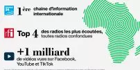 Sur les réseaux sociaux, France 24 rassemble 3,6 millions d’abonnés géolocalisés au Maghreb sur sa page Facebook en français et 3,8 millions sur sa page en arabe. Sur YouTube, la chaîne en arabe cumule 7,4 millions de vues mensuelles (+37% vs 2023), tandis que la version française atteint 3,9 millions (+30% vs 2023).